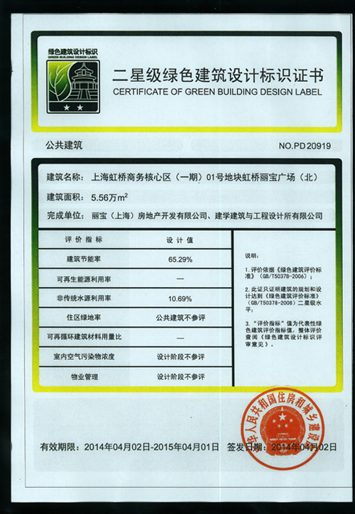 上海市勘察设计行业协会 2013 年“上海市优秀工程设计二等奖'